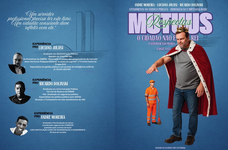 O livro é a base do programa Mutuus Respectus, essa metodologia foi desenvolvida exclusivamente para atender o serviço público que carece de meios eficazes de aperfeiçoamento da qualidade do serviço público. Este livro é um convite a transformar protocolo em clareza, regra em previsibilidade e procedimento em respeito. Não é fácil alcançar a excelência. Mas é possível encontrar o caminho quando três pilares estão presentes: